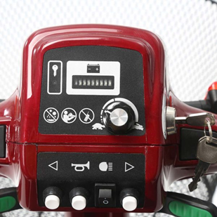O seu motor de 250W permite-lhe atingir uma velocidade máxima de até 8 km/h e as suas duas baterias de 24Ah proporcionam-lhe uma autonomia máxima de até 25 quilómetros. Tanto a coluna de direção quanto o assento são reguláveis em profundidade, podendo ajustar a altura do assento e girá-lo a 360º.