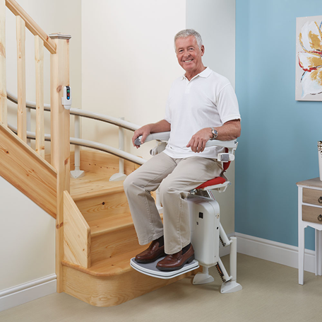 A solução para quem tem dificuldades em subir e descer escadas. Tanto a cadeira reta como a curva são desenhadas e fabricadas em exclusivo para cada caso em concreto com a exceção das cadeiras retas, sendo um rail reto, são consideradas standard. Uma das suas vantagens é a rápida instalação. A velocidade de ambas é a mesma. Exceto no percurso curvo que reduz a velocidade. Também podem ser instaladas em escadas em caracol facilitando o acesso a pessoas com mobilidade reduzida a qualquer andar da sua casa,incluindo sótão.